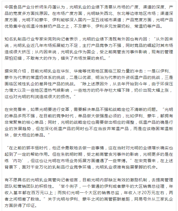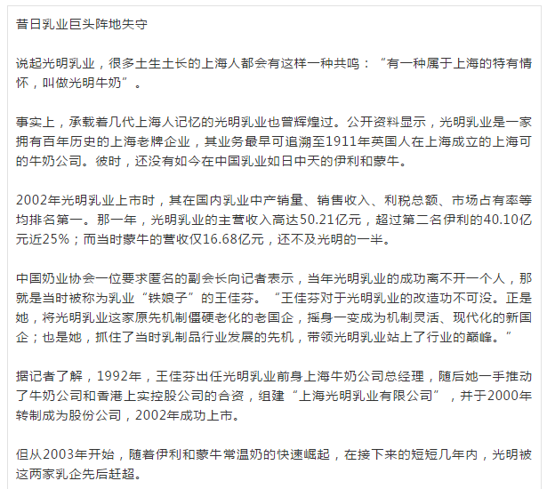 【聚焦】光明乳业坠入暗夜 昔日巨头何时再现"光明"?