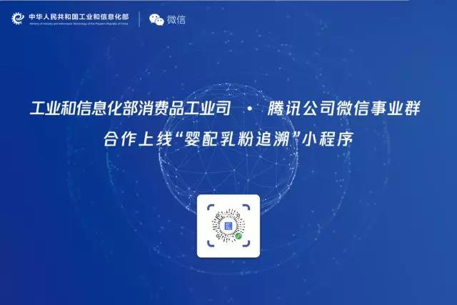 7月2日,工业和信息化部(下称:工信部)消费品工业司与腾讯微信在北京签署了合作备忘录,并正式发布由双方合作开发的“婴配乳粉追溯”小程序。这是全国首个官方奶粉溯源小程序,将为消费者提供更便捷、权威的婴幼儿配方乳粉产品追溯查询方式。