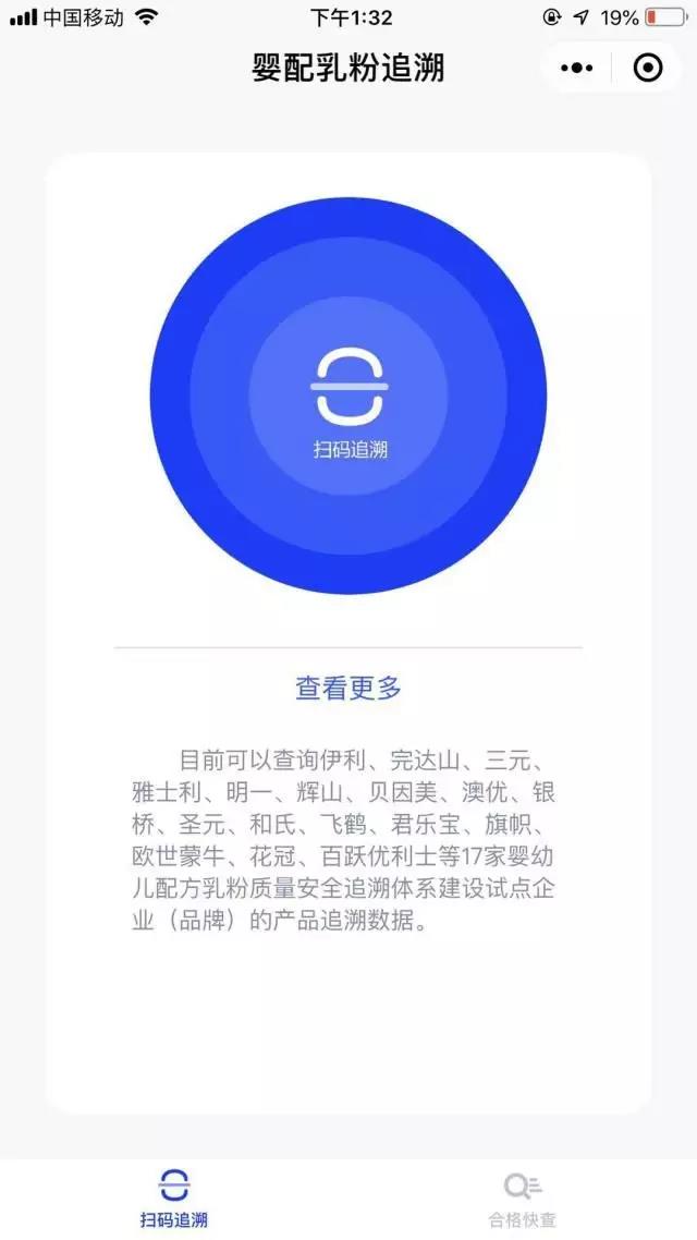 国家统计局数据显示,2018年1月至11月,我国有近88万吨奶粉被生产出来。“婴配乳粉追溯”小程序就是希望给用户更多安全感:消费者通过扫码功能,就能一键追溯产品、消费、企业等关键信息。此外,不仅是婴儿配方乳粉,国内食品抽检情况以及海关总署对进口食品抽检情况,也能通过“合格快查”快速获悉。目前,已有17家企业或品牌累计7.1亿条产品信息加入“信息库”。具体而言,小程序目前可查询伊利、完达山、三元、雅士利、明一、辉山、贝因美、澳优、银桥、圣元、和氏、飞鹤、君乐宝、旗帜、欧世蒙牛、花冠、百跃优利士17家婴幼儿配方乳粉质量安全追溯体系建设试点企业或品牌的产品追溯数据