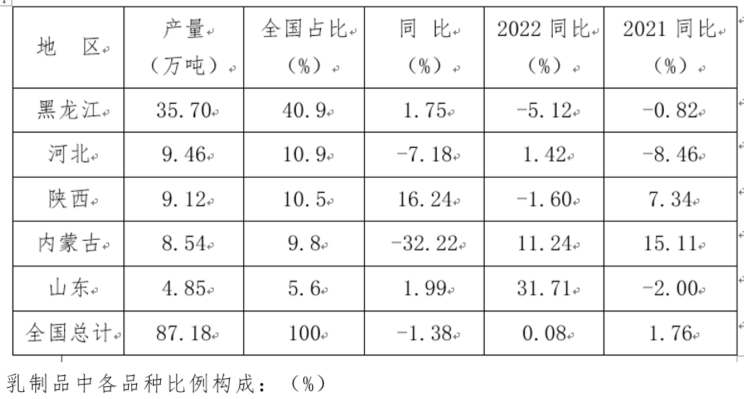 2023年乳粉重点产区情况: