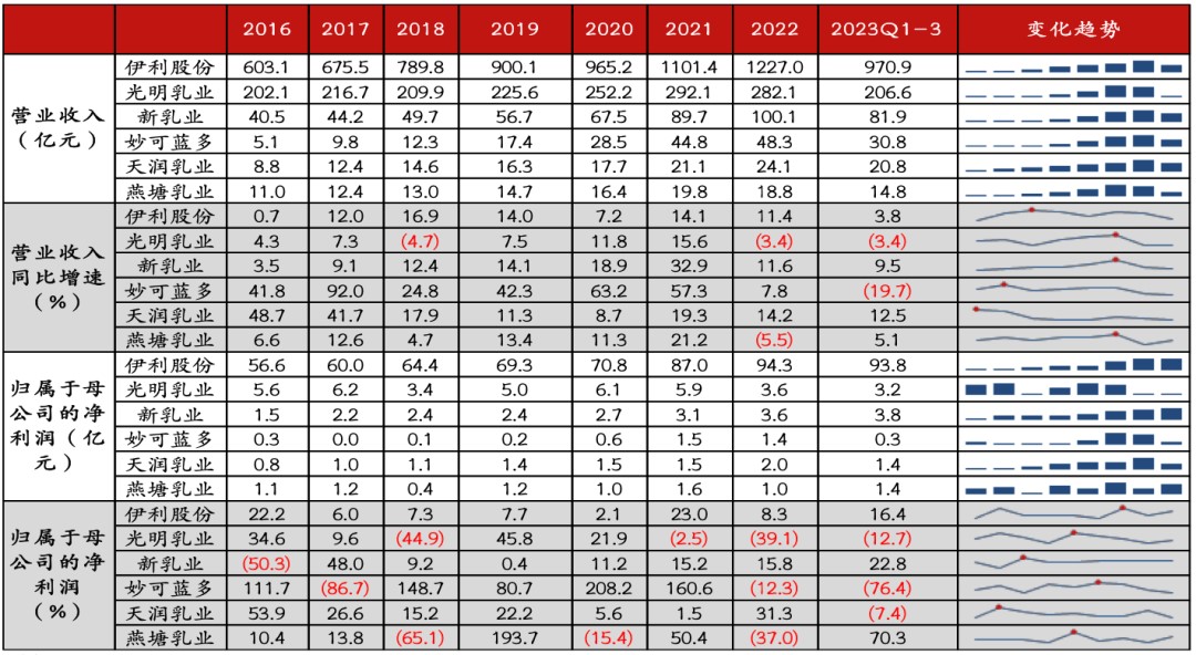 资料来源:资产信息网 千际投行 iFinD 图 乳制品行业上市公司营业收入、归属母公司及同比增速