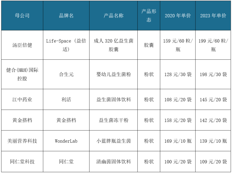 部分益生菌终端产品价格一览
