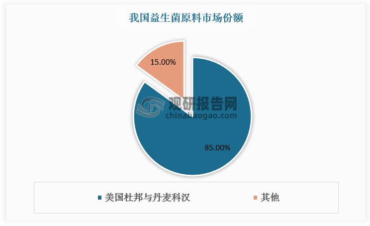 益生菌行业机遇与挑战并存。在行业快速增长的同时,也存在一些问题制约行业升级发展。从上游原材料市场看,国外企业垄断情况严重,美国杜邦与丹麦科汉森占据国内85%的原材料市场;从中游研发生产能力看,目前国际益生菌专利申请基本来自美国、日本、俄罗斯等传统研发强国,我国专利申请量相对较少。这两大因素导致国内益生菌行业市场大部分份额被海外大厂所占据,本土企业处于弱势地位。