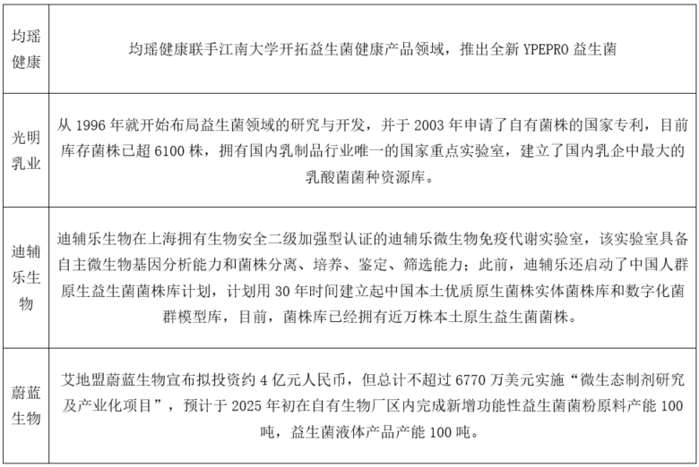 我国部分益生菌企业研发创新情况